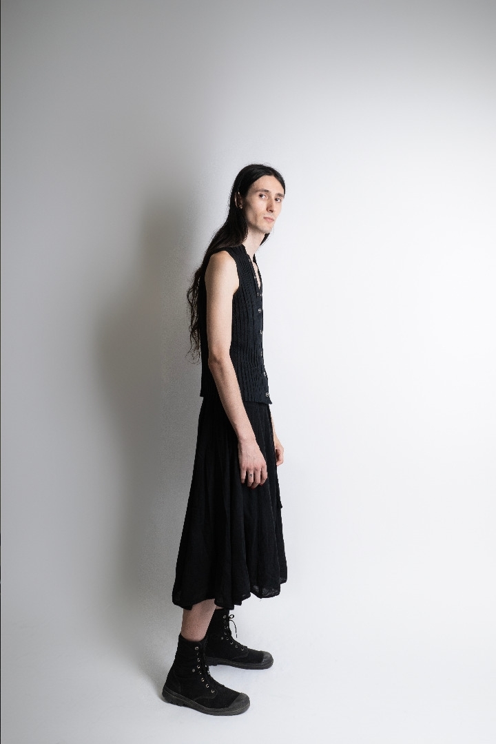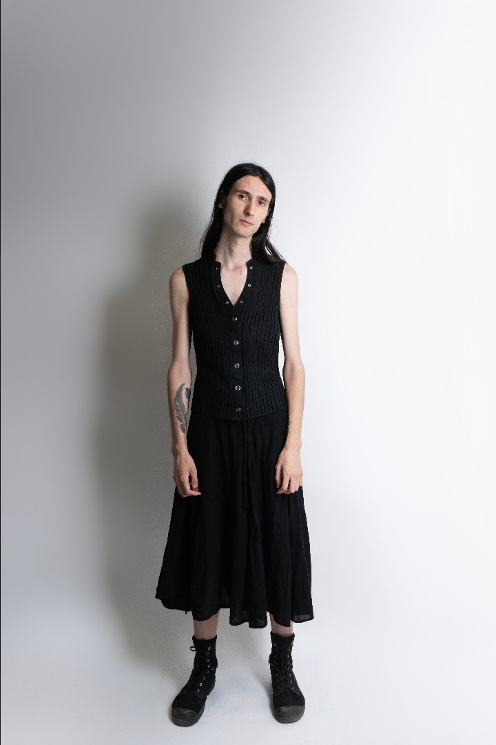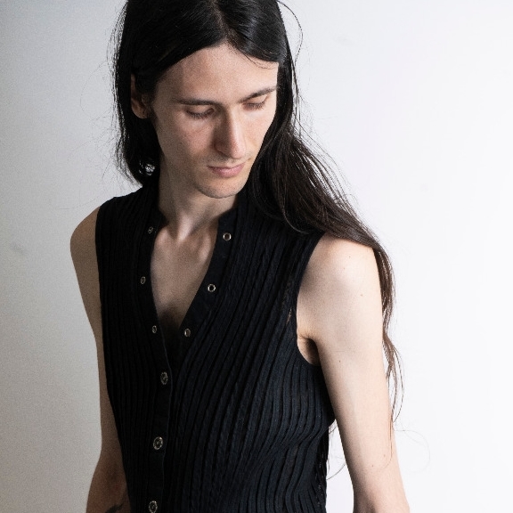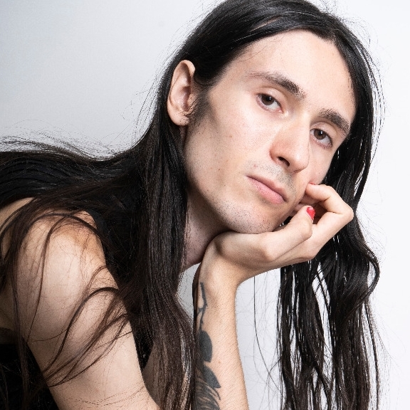 Muy delgado, pelo largo, alto