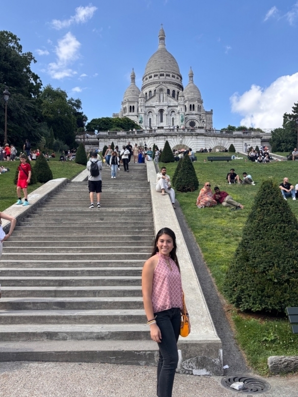 ojos almendrados, gran sonrisa, un poco morena