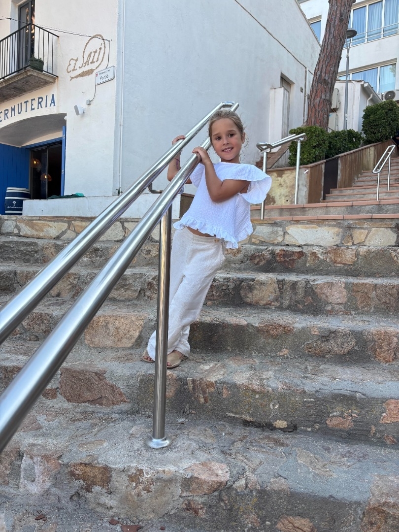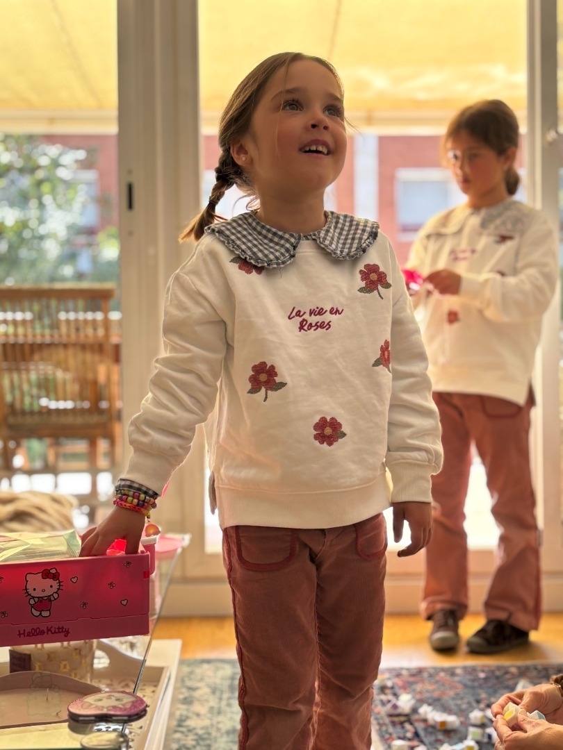 Niña muy risueña, expresiva y con duende.