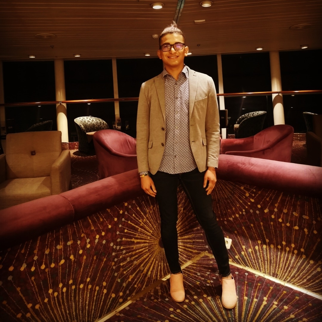 Sonriente y divertido.