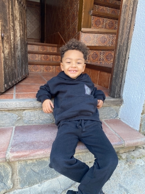 Izan es un niño mulato, con el pelo rizado, piel marroncita, rasgos mestizos , muy guapo y extrovertido.