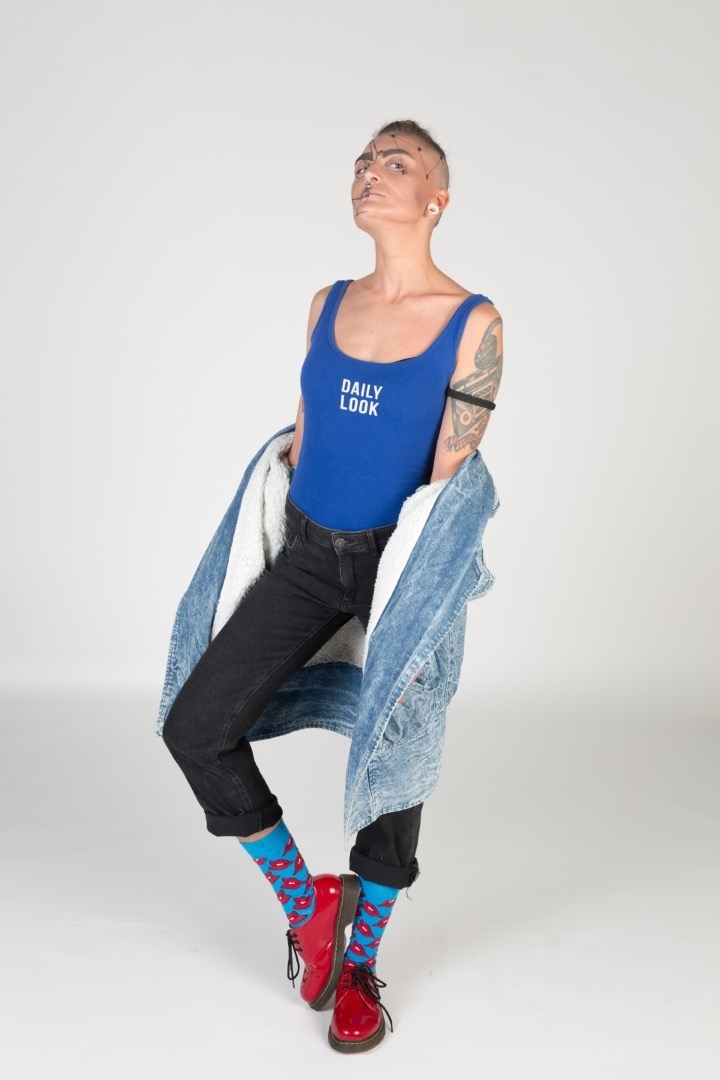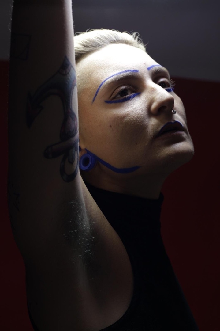 Características Androgenas , mujer femenina tatuada con piercing y dilatadores