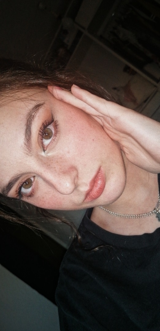 Tez blanca, ojos color avellana y pecas en el rostro.