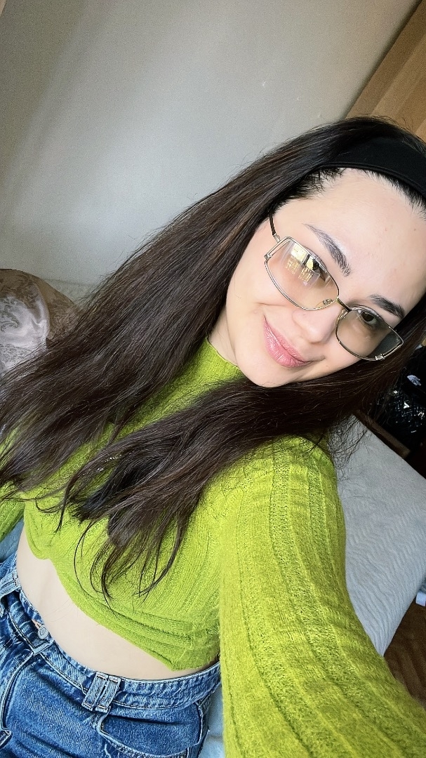 Piercing en la nariz, tatuaje en medio del pecho. Lunar en el hombro derecho.