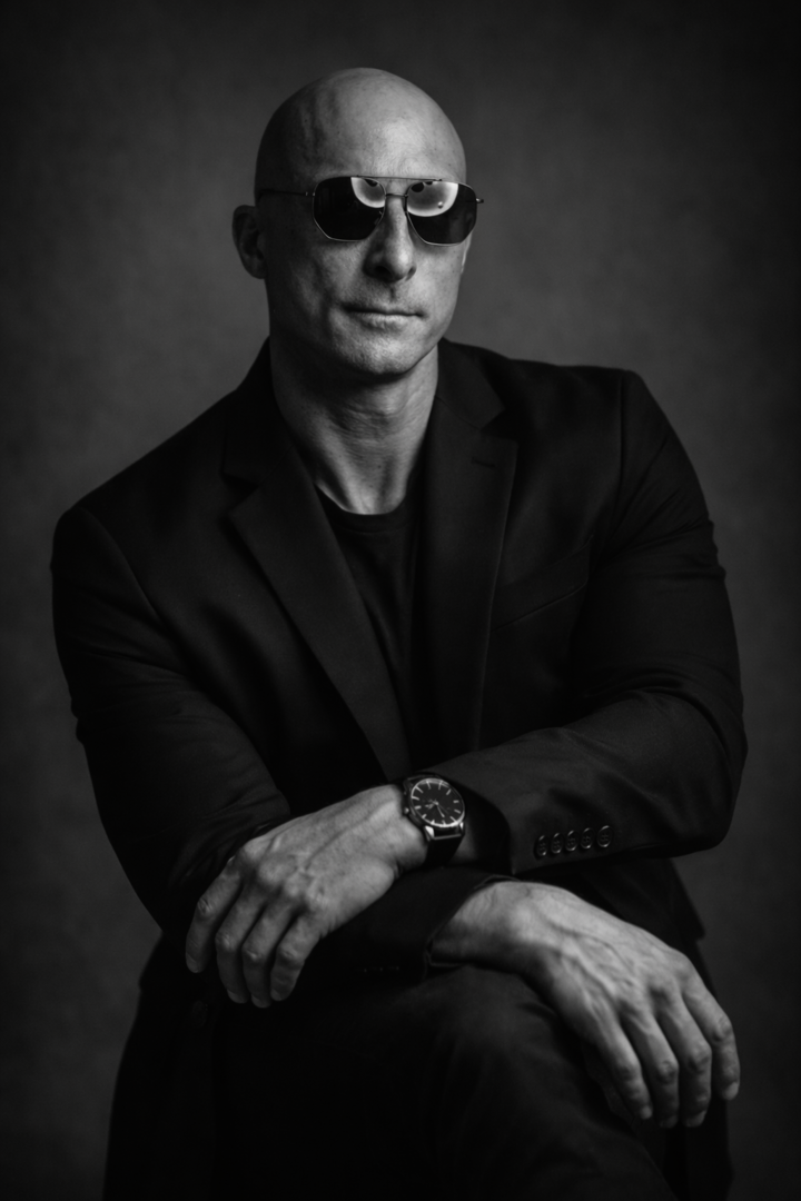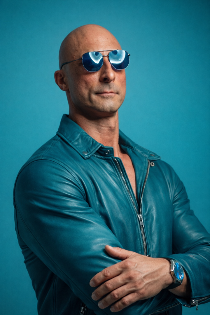 Soy calvo, cuerpo atlético y fitness.