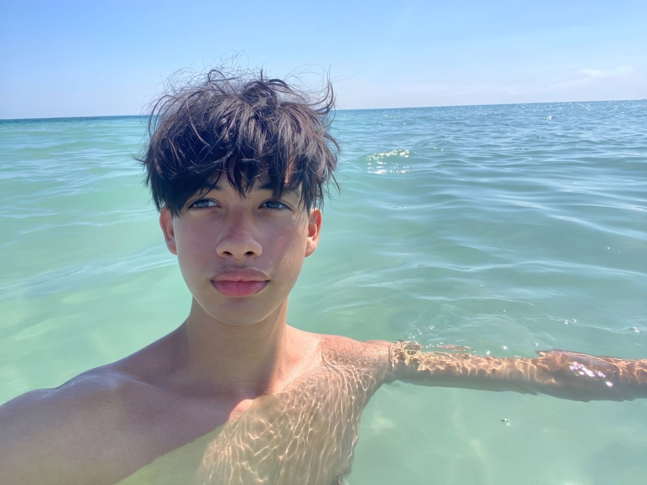 Blanco, delgado, labios gruesos.