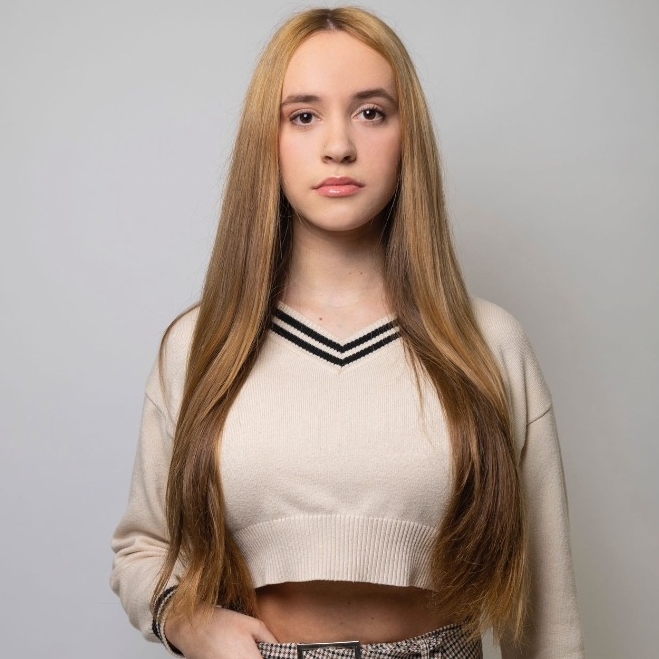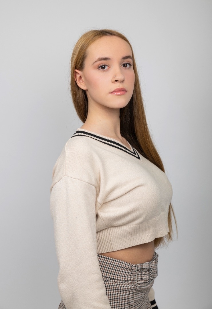 Soy rubia natural tengo los ojos muy bonitos y las pestañas muy largas naturales.Mi dentadura es perfecta.Me encanta modelar en publicidad y el cine.