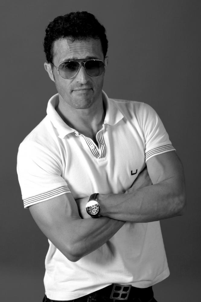 aspecto deportista, bastante musculado, rasgos faciales duros,cierto parecido a sylvester stallone en la decada de los 80