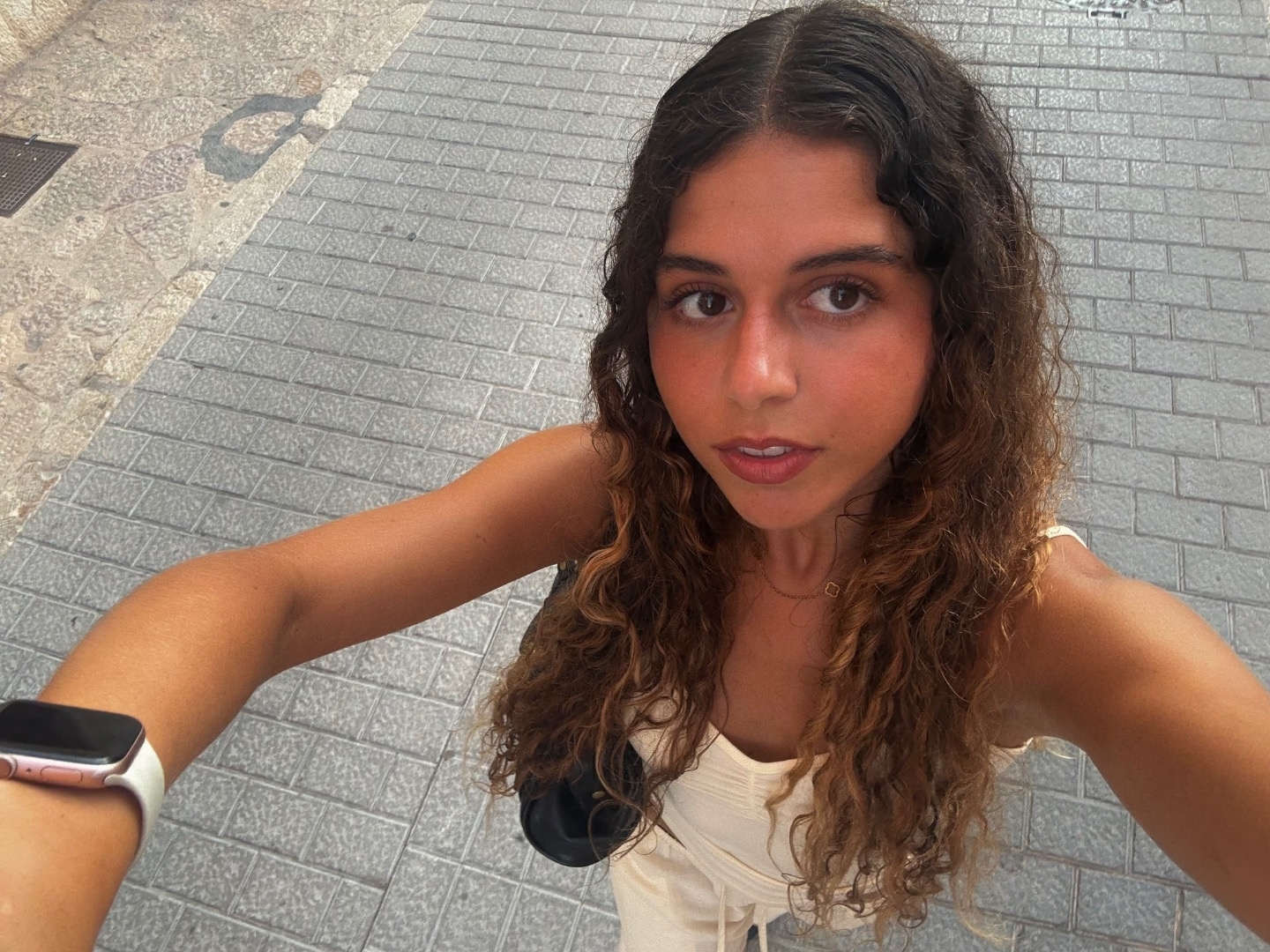 Pelo rizado y expresiones aniñadas. Bailarina profesional de danza clásica y jazz.