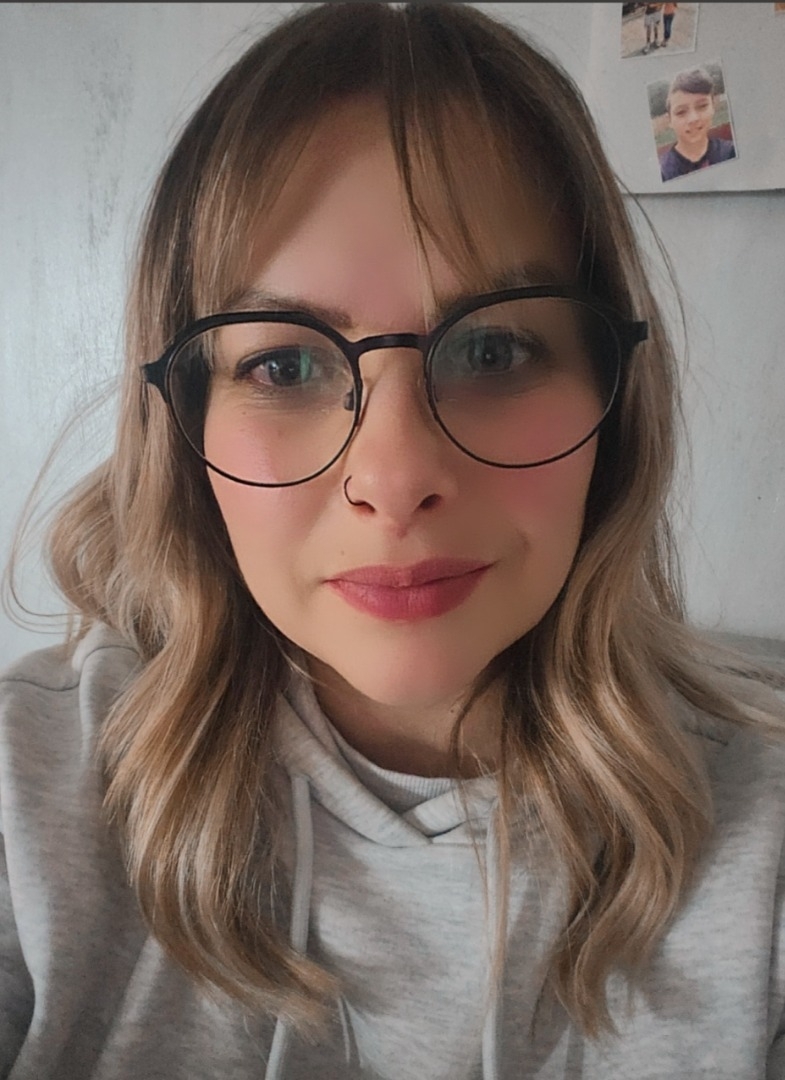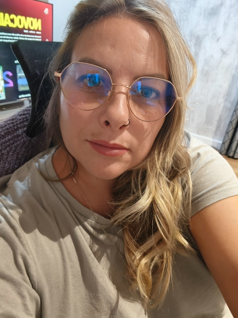 Tengo los ojos verdes azulado con gris pelo liso y ondulado con muchas rubias
